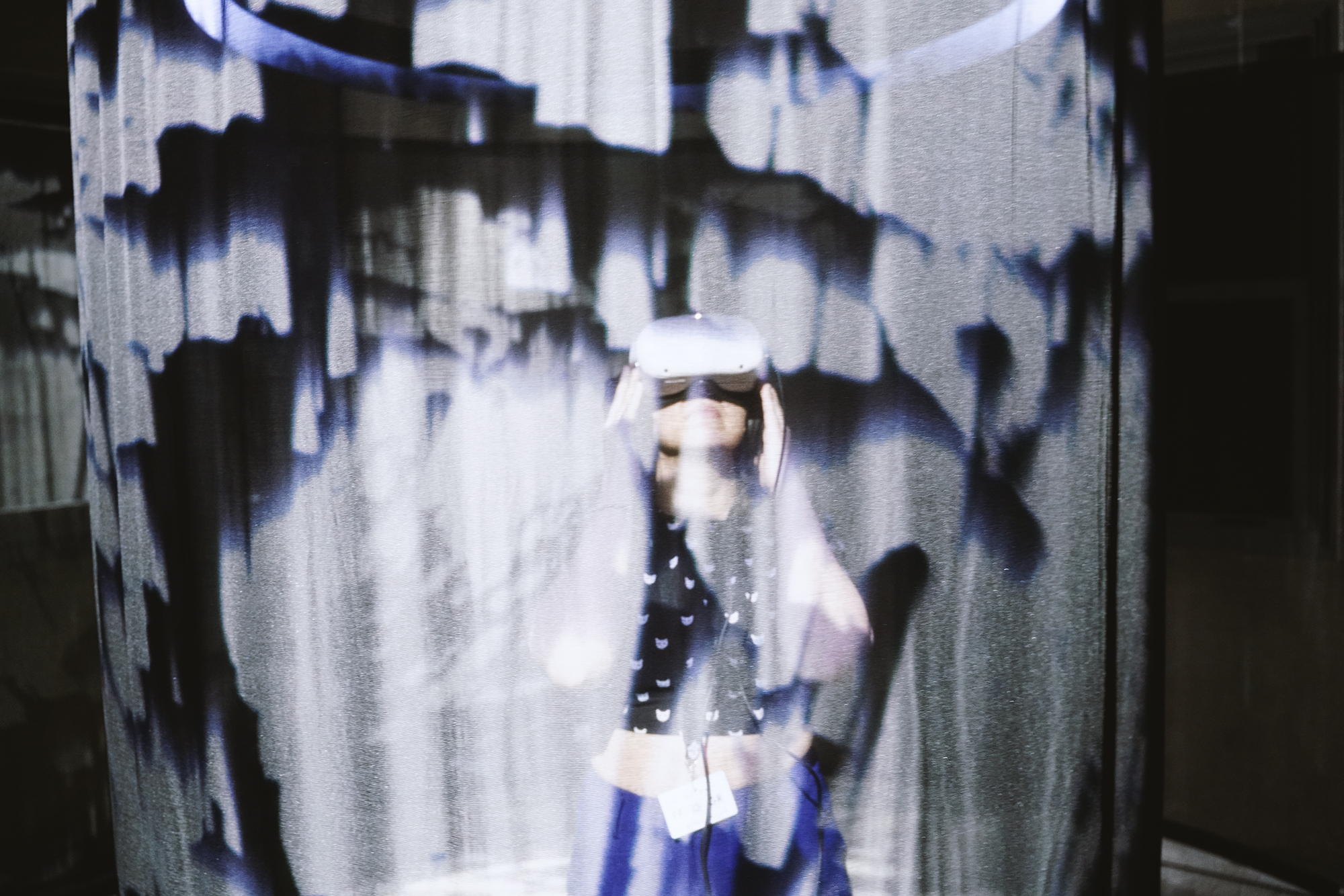 The physical space complements the world of virtual reality, offering a layered and enriched encounter—a true mise en abyme.